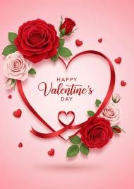 A romantic Valentine’s Day illustration featuring red and pink roses arranged around a heart-shaped ribbon with the message “Happy Valentine’s Day.” Perfect for love greetings, romantic cards, social media posts, digital invitations, and Valentine’s Day celebrations.