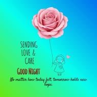 Sending Love and Care Good Night Image with Cute Girl and Rose Balloon