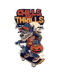 halloween werewolf art spooky skateboard design chills and thrills illustration halloween streetwear graphic werewolf with pumpkin bucket trick or treat artwork halloween moon design scary werewolf cartoon spooky tshirt graphicAdmin