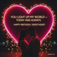 A romantic scene featuring a couple standing and birthday wishes