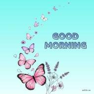 A gentle pink watercolor butterflies fades upward diagonally with good morning wishes