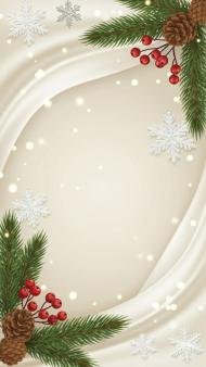 A luxurious Christmas themed vertical greeting card template with a blank cream colored center