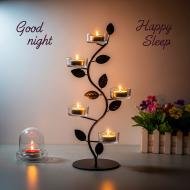 A peaceful good-night scene featuring a decorative candle holder with softly glowing tea-light candles and the words “Good night” and “Happy Sleep.” Perfect for bedtime wishes, relaxation content, mindfulness posts, cozy home décor inspiration, and sleep-well messages.