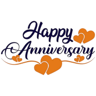 A stylish happy anniversary typography design featuring elegant lettering and warm orange heart elements on a dark background. Perfect for anniversary wishes, romantic greetings, couple celebrations, wedding milestones, and love-themed digital designs.