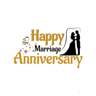 Elegant happy marriage anniversary stock image featuring golden typography text with decorative elements and a romantic couple silhouette. Perfect for wedding anniversary greetings, celebration cards, social media posts, invitations, posters, banners, and romantic event designs.