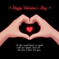 Happy Valentine’s Day Heart Hands Illustration with Romantic Love Quote on Black Background