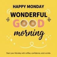 Happy Monday Good Morning Coffee Quote on Yellow Background
