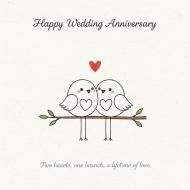 Happy Wedding Anniversary Cute Birds Illustration with Romantic Quote