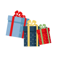 featuring three colorful gift boxes with ribbons and bows on a black background.