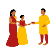 A festive Diwali illustration depicting a man offering a lit diya