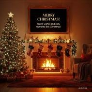 Merry Christmas wishes with campfire and Christmas tree