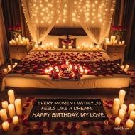 A romantic scene featuring a couple standing and birthday wishes