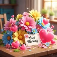 Good morning images with heart made up of flowers