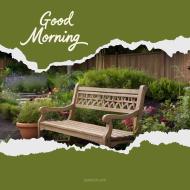 the bench and flowers with the words "Good Morning". The overall aesthetic is peaceful and serene, with a focus on the natural beauty of the garden.